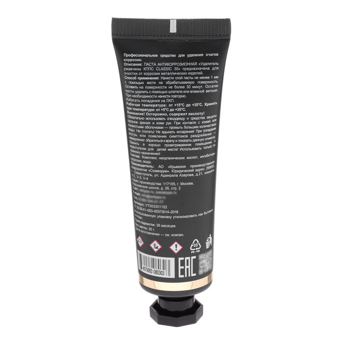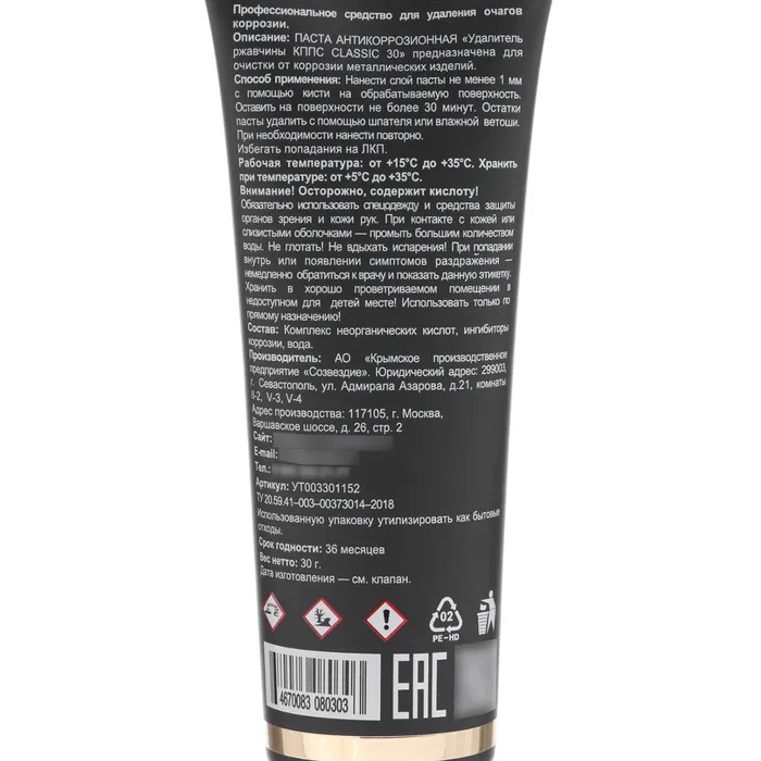 Гель антикоррозионный КППС Classic Удалитель ржавчины — это профессиональное средство для удаления ржавчины, продуктов коррозии и стойких окалин размером до 3 мм. Консистенция геля позволяет средству проникать в поры и микротрещины, останавливая процесс коррозии. Гель равномерно наносится на поверхность, обеспечивая экономичный расход и обработку локальных очагов. Время обработки составляет до 30 минут. Удалитель ржавчины КППС Classic образует защитную плёнку и обеспечивает высокий уровень адгезии последующего покрытия.