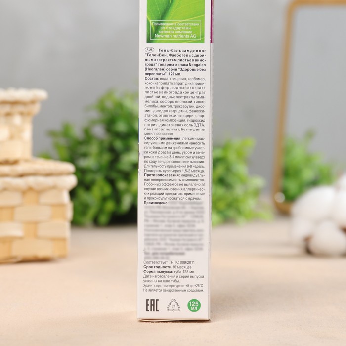 Гель-бальзам "Вен Флебогель" с двойным экстрактом листьев винограда - это уникальное средство для ухода за ногами и снятия усталости. Каждая упаковка содержит 125 мл геля-бальзама.