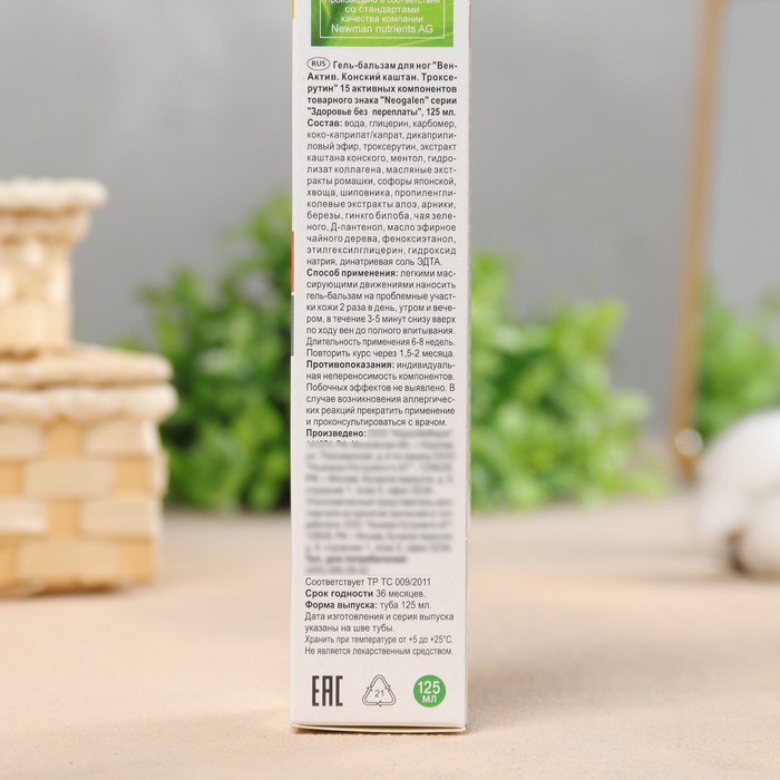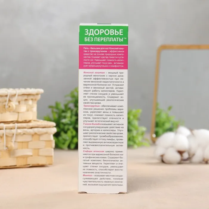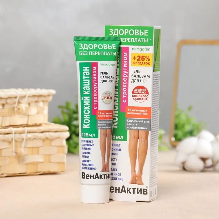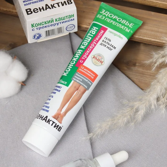 Эффективное средство на основе натуральных биоактивных компонентов. Способствует устранению усталости и тяжести в ногах, уменьшению вечерних отеков. Оказывает комплексное положительное действие. Способствует активизации функции венозных клапанов, микро циркуляции и лимфооттока. Снижает риск возникновения трофических изменений кожи (сухость, шелушение, истонченность). Питает, смягчает, увлажняет и освежает кожу ног. Эффективность и безопасность геля-бальзама для ног обеспечена синергизмом активных природных компонентов.