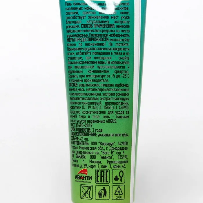 Гель-бальзам после укусов ARGUS 42 мл туба — Характеристики