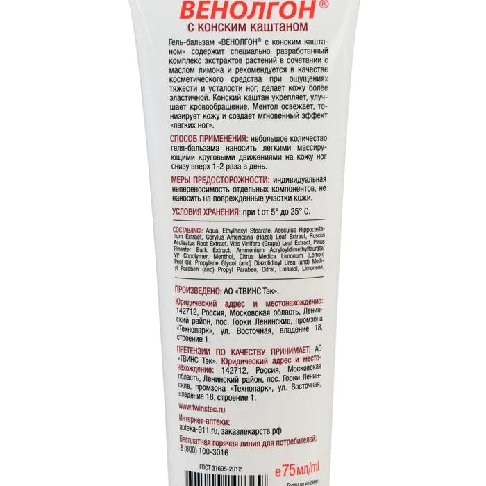 Гель-бальзам «Венолгон с конским каштаном» рекомендуется как вспомогательное средство при лечении варикозного расширения вен, тромбофлебита. Используется для профилактики тромбозов, оттёков и посттравматических поражений вен.