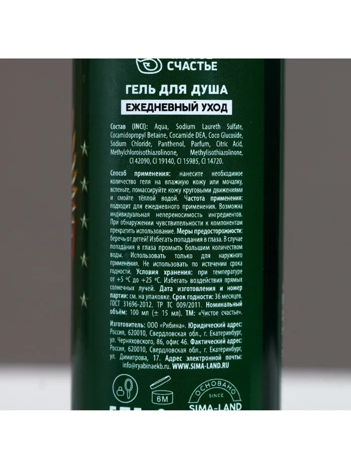 Гель для душа «23 Февраля», 100 мл, аромат мужского парфюма, Чистое счастье — Характеристики