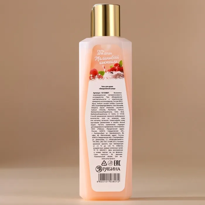 Гель для душа, 250 мл, аромат малинового коктейля, AROMA SOUND by URAL LAB — Характеристики
