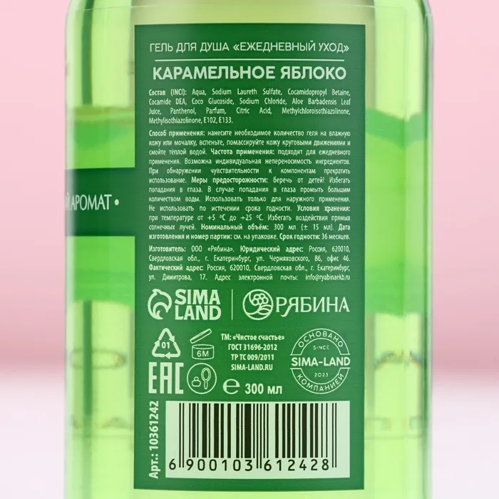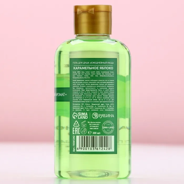 Гель для душа, 300 мл, аромат карамельного яблока, Чистое счастье — Характеристики