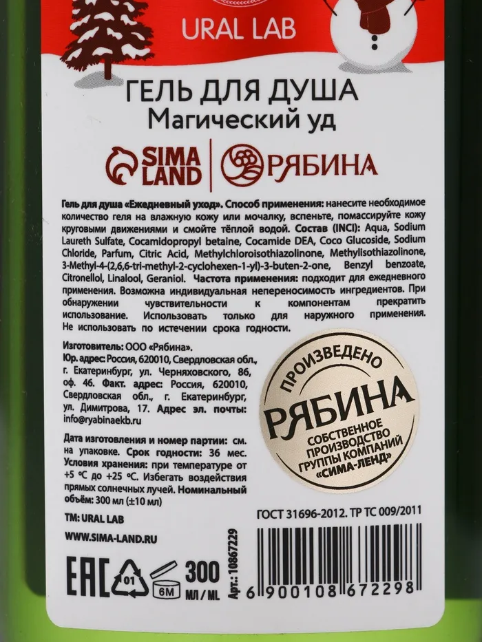 Гель для душа, 300 мл, Magical warm winter, аромат: магический уд, Ural Lab Winter Melody — Характеристики