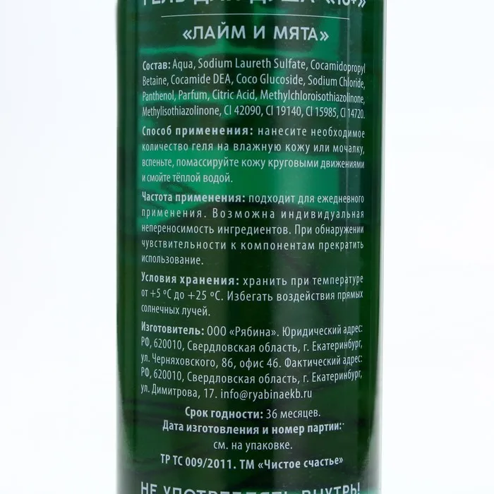 Гель для душа, 500 мл, аромат лайма и мяты, 18+, Чистое счастье — Характеристики