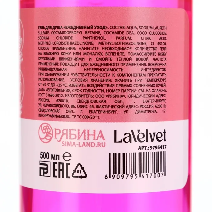 Гель для душа, 500 мл, аромат малины, LaVelvet — Характеристики