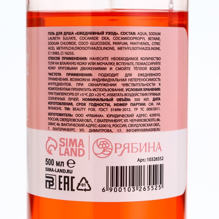 Гель для душа, 500 мл, аромат мандарина, BEAUTY FOX — Характеристики