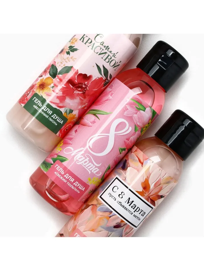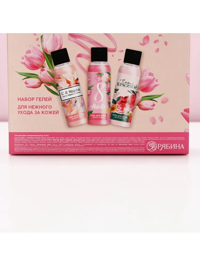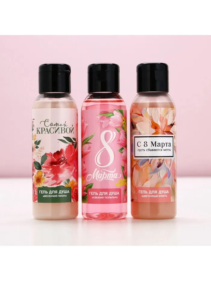 Гель для душа «8 Марта!», набор 3×100 мл, Чистое счастье — Характеристики