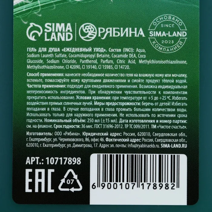 Гель для душа «Будь первым», 250 мл, аромат лайма, Чистое счастье — Характеристики