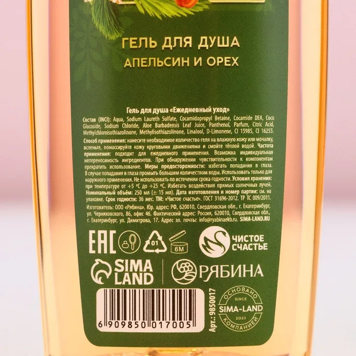 Гель для душа «Чудес в Новом Году!», 250 мл, аромат апельсина и орехов, Чистое счастье — Характеристики