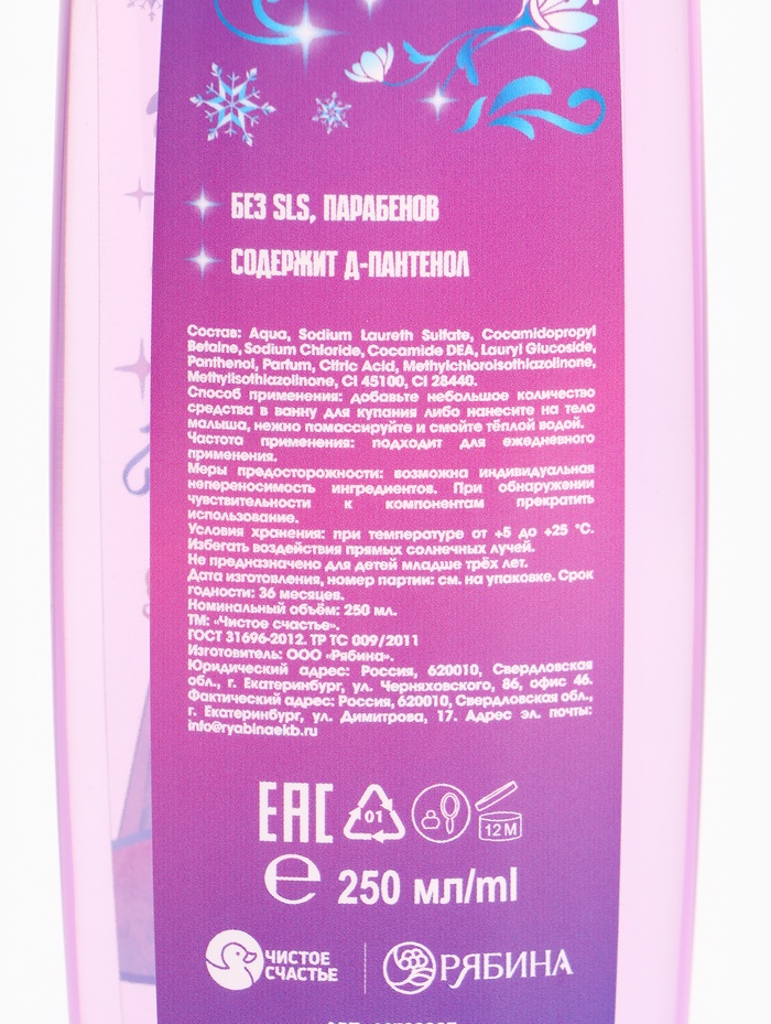 Гель для душа детский, 250 мл, аромат фруктовый лёд, «Холодное сердце» — Характеристики