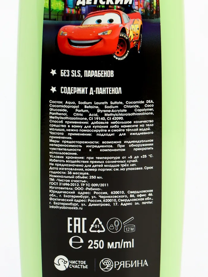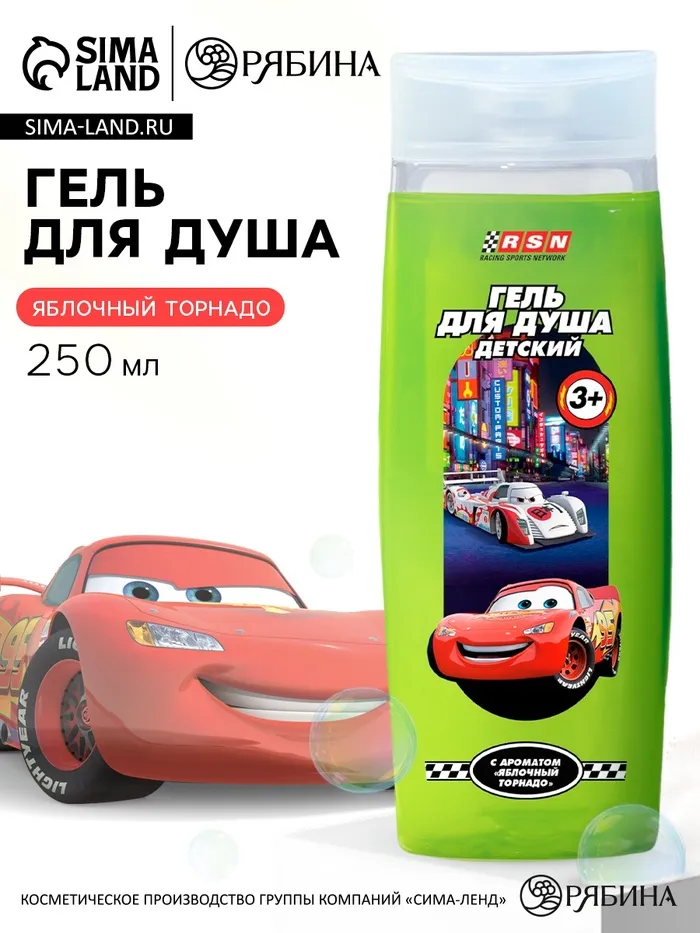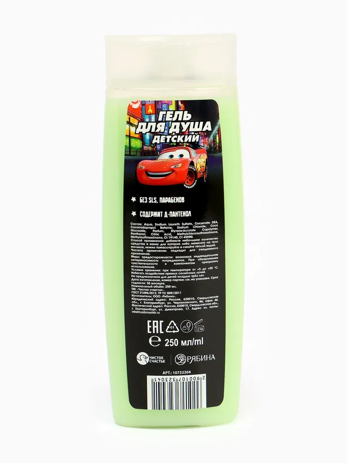 Гель для душа детский, 250 мл, аромат яблочный торнадо, Тачки — Характеристики