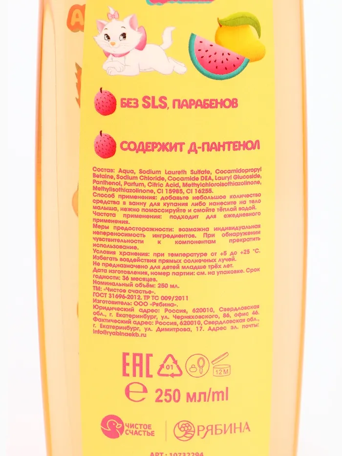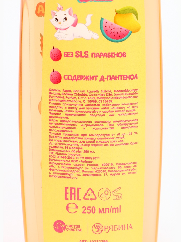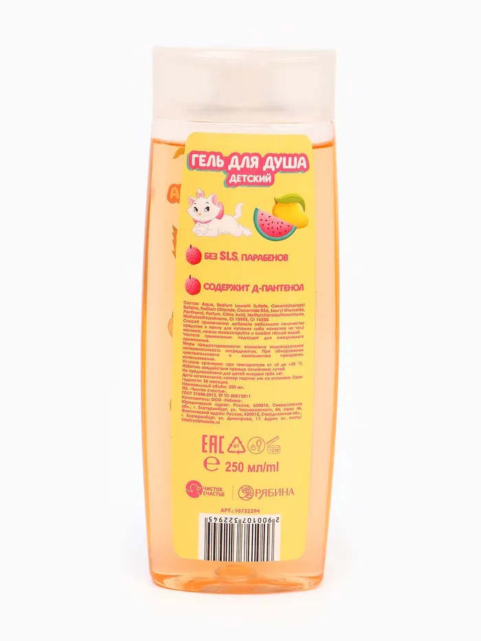 Гель для душа детский, 250 мл, аромат тропический лимонад, Кошечка Мари — Характеристики