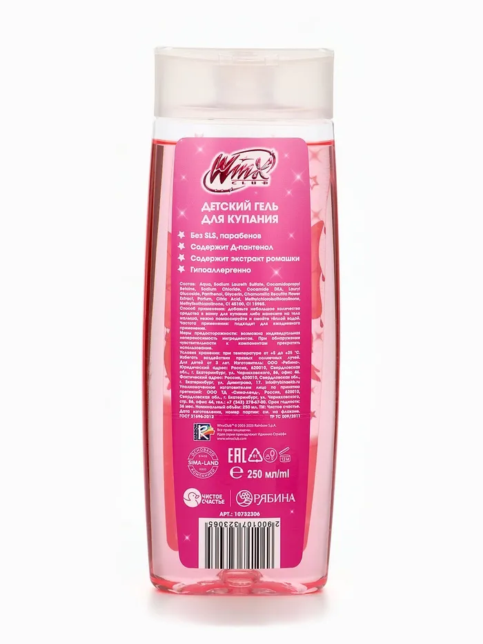 Гель для душа детский, 250 мл, аромат тутти-фрутти, ВИНКС — Характеристики