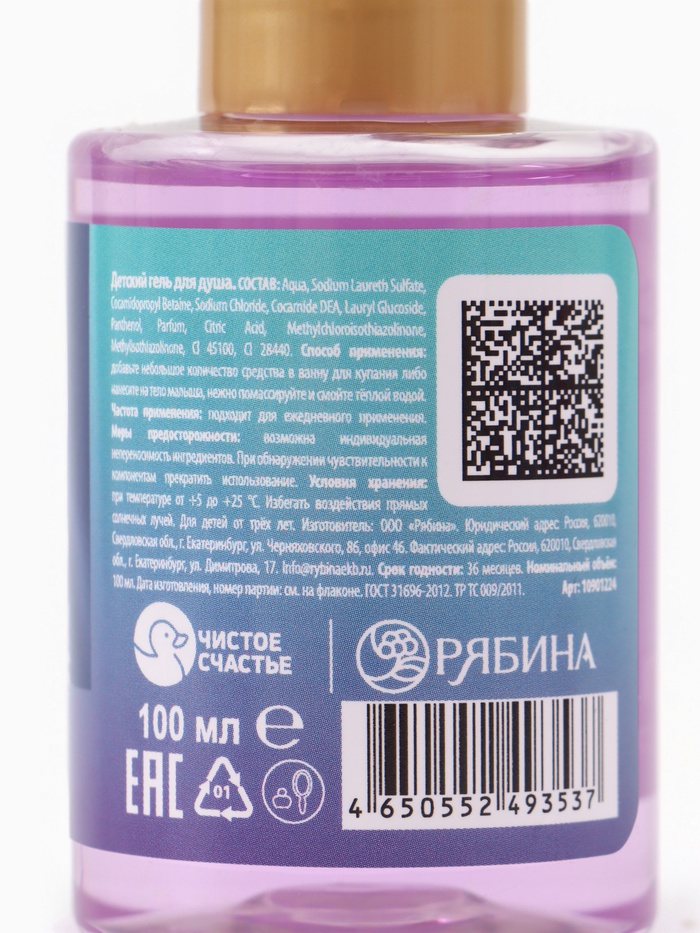 Гель для душа детский, аромат фруктовый лед, 100 мл, Холодное сердце — Характеристики