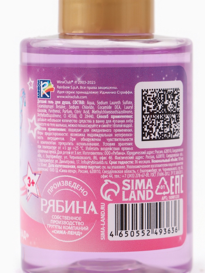 Гель для душа детский, аромат тропический лимонад, 100 мл, Винкс — Характеристики
