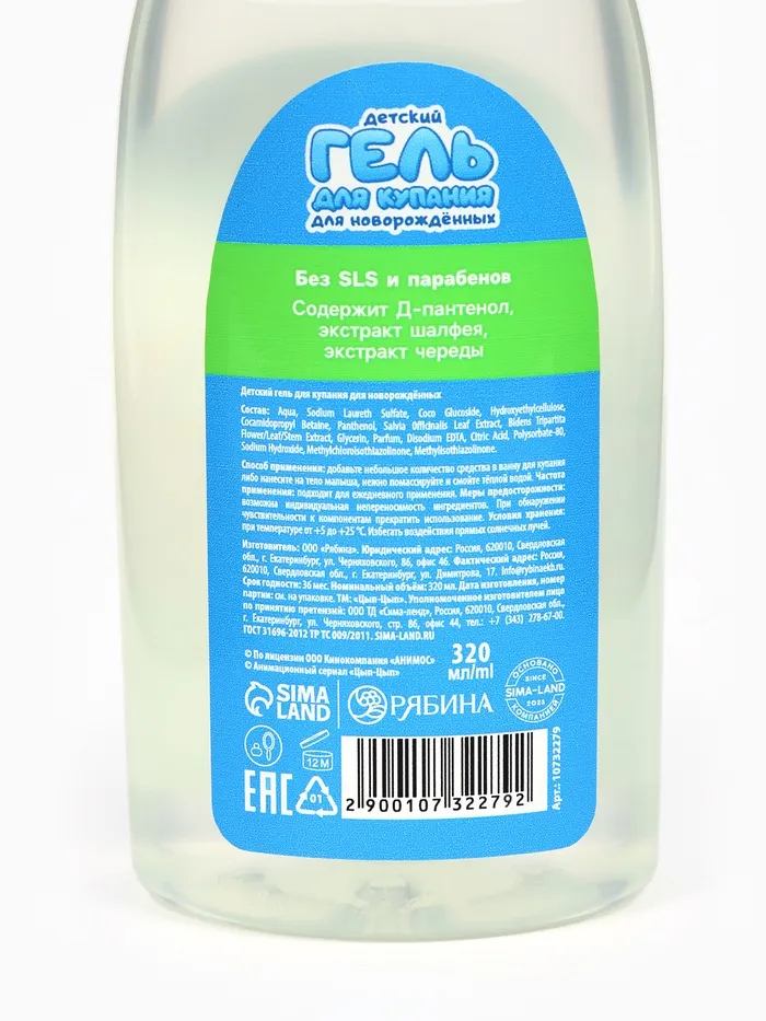 Гель для душа детский для новорожденных, 320 мл, ромашка, ЦЫП-ЦЫП — Характеристики