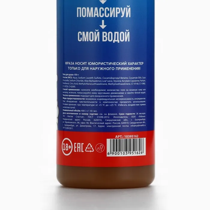 Гель для душа «Для трёх лиц», 400 мл, аромат шоколада, 18+, Чистое счастье — Характеристики