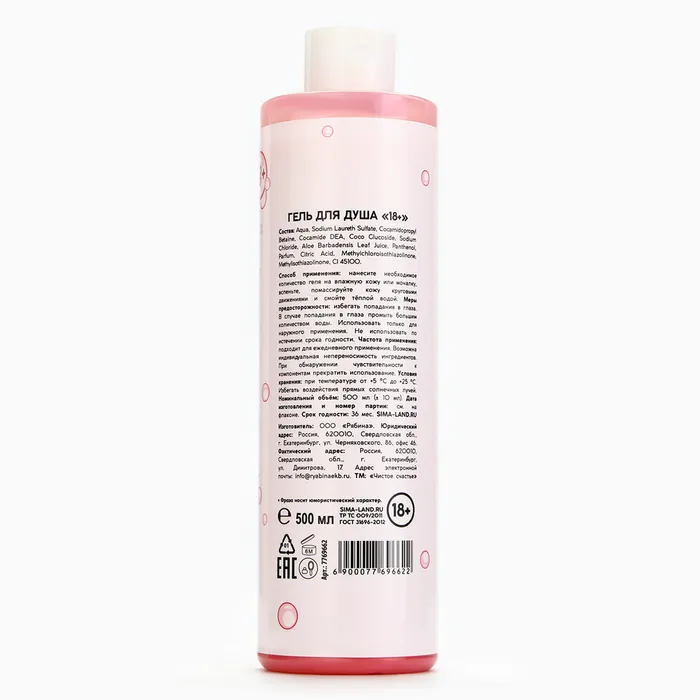 Гель для душа «Для твоих бидончиков», 500 мл, аромат ванили, 18+, Чистое счастье — Характеристики