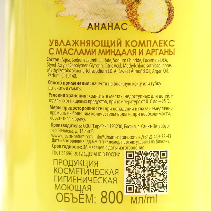 Ощутите тепло солнечного тропического острова вместе с гелем для душа DreamNature! Почувствуйте мягкую, бархатистую пену кристально чистого моря на своей коже и насладитесь ароматом фруктовым сочного, сладкого ананаса.