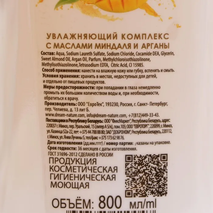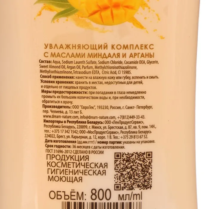 Гель для душа Dream Nature "Сочное манго" 800 мл — Характеристики