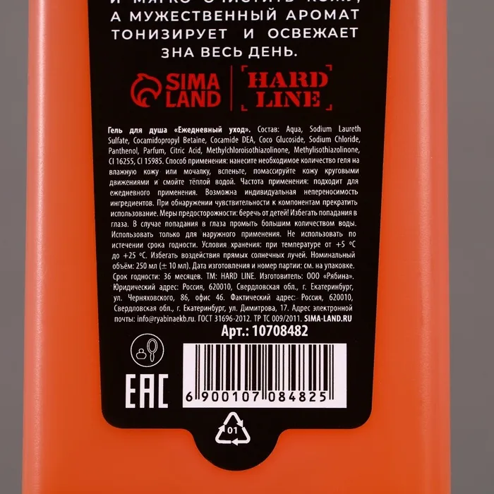 Гель для душа «Энергия солнца», 250 мл, аромат цитруса и бергамота, HARD LINE — Характеристики
