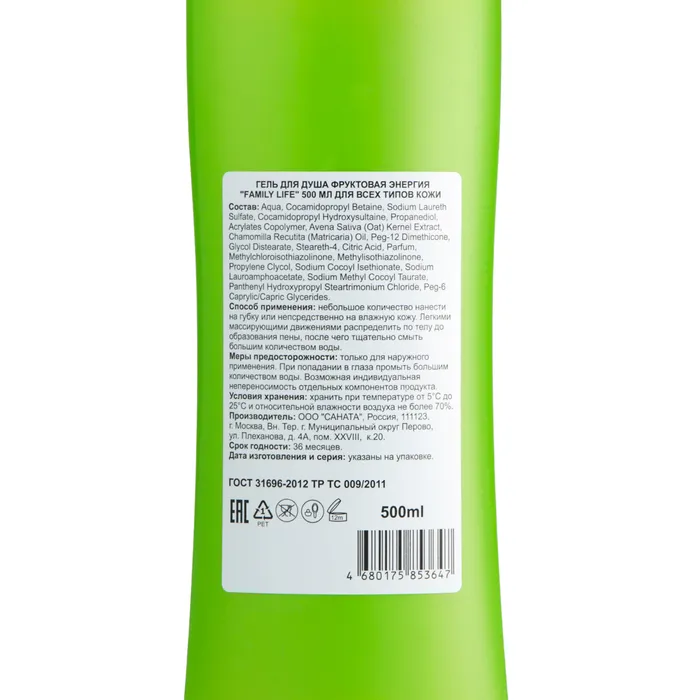 Гель для душа Family Life «Фруктовая энергия» — это идеальное средство для тех, кто хочет окунуться в мир свежести и ярких ароматов. Объём упаковки составляет 500 мл, что позволяет долго наслаждаться этим замечательным продуктом.