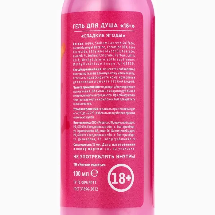 Гель для душа I Love you, 100 мл, аромат сладких ягод, 18+, Чистое счастье — Характеристики