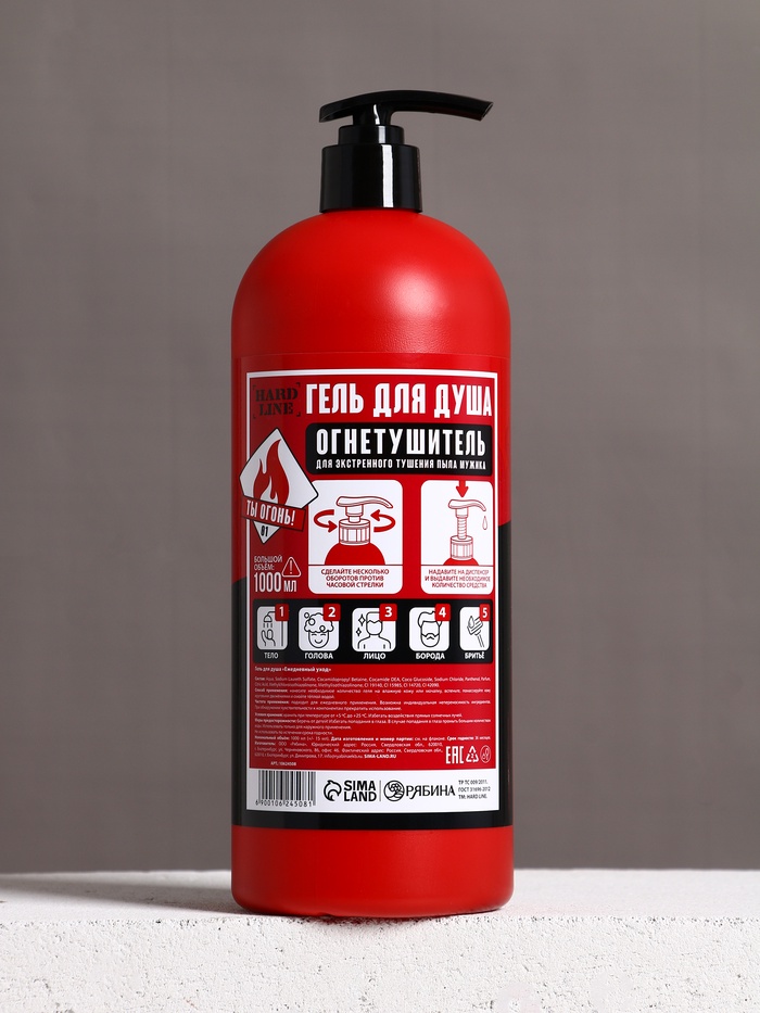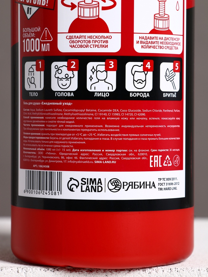 Гель для душа и шампунь для волос 2 в 1 «Огнетушитель пенный», 1000 мл, HARD LINE — Характеристики