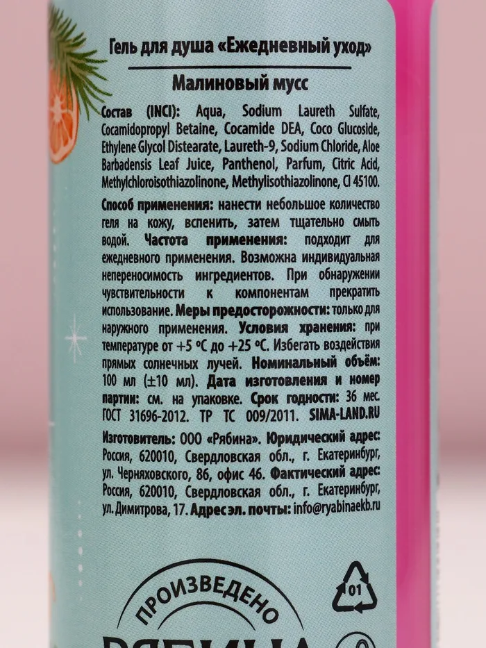 Гель для душа «Игристого года!», 100 мл, аромат малинового мусса, Чистое счастье — Характеристики