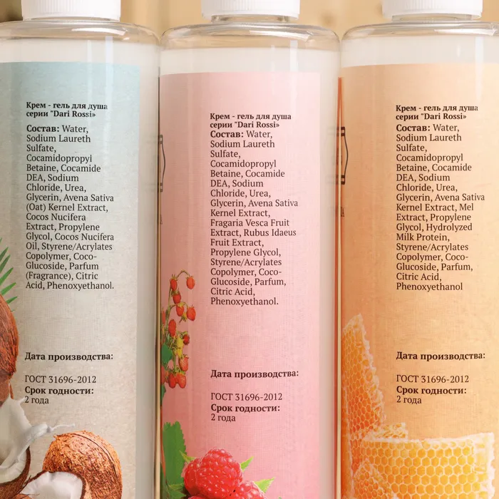 Гель для душа "Кокос, Ягоды, Мёд", 3 шт по 400 мл + 2 мочалки — это набор для комплексного ухода за кожей, который превращает каждодневные водные процедуры в настоящий ритуал расслабления и удовольствия.