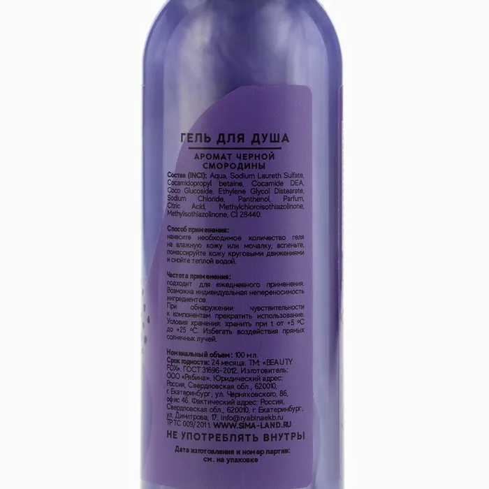 Гель для душа «Ква, квасота», 100 мл, аромат черной смородины, Beauty Fox — Характеристики