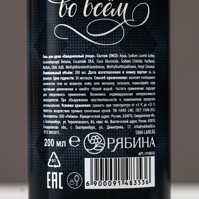 Гель для душа «Лучший мужчина», 200 мл, аромат мадагаскарского перца и лайма, HARD LINE — Характеристики