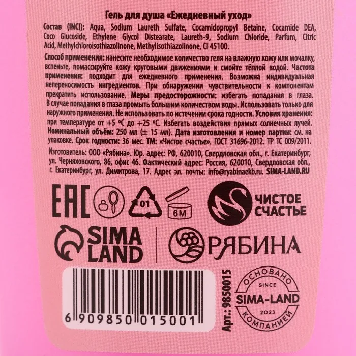 Гель для душа «Магия Нового Года», 250 мл, аромат морозных ягод, Чистое счастье — Характеристики