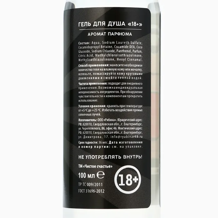 Гель для душа «Маленький гель», 100 мл, аромат парфюма, 18+, Чистое счастье — Характеристики