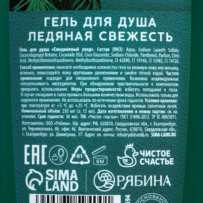 Гель для душа Man energy, 250 мл, аромат свежести, Чистое счастье — Характеристики