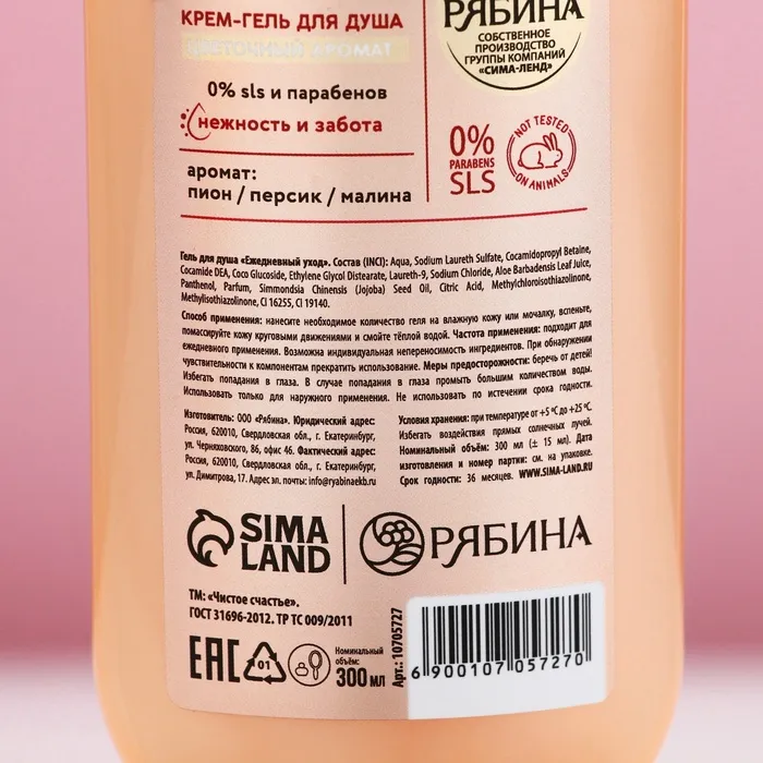 Гель для душа «Мягкое увлажнение», 300 мл, аромат цветов, Чистое счастье — Характеристики