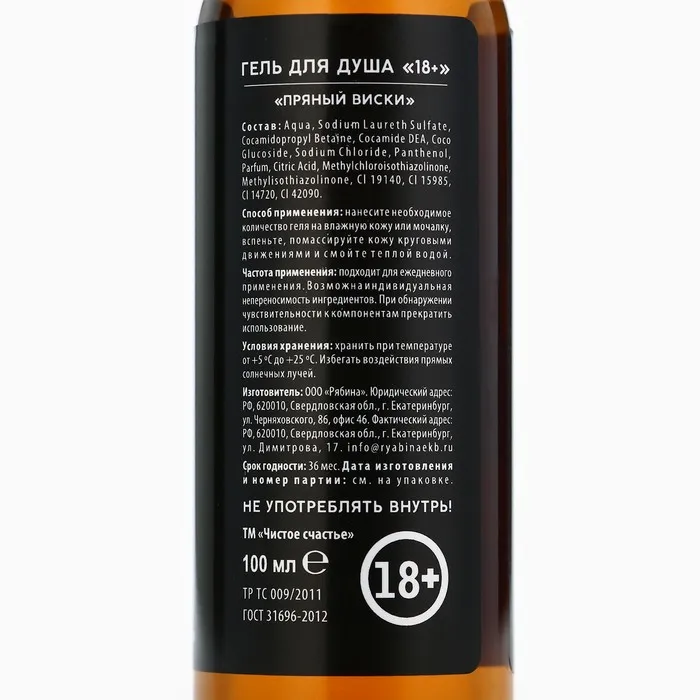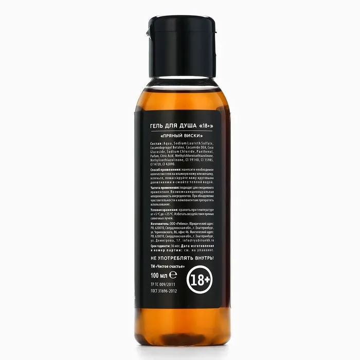 Гель для душа «Мужчине с большим достоинством», 100 мл, аромат пряного виски, 18+, Чистое счастье — Характеристики