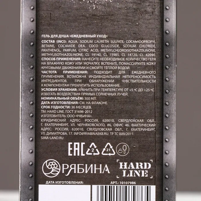 Гель для душа мужской «23 Февраля», 300 мл, аромат сандала и бергамота, HARD LINE — Характеристики