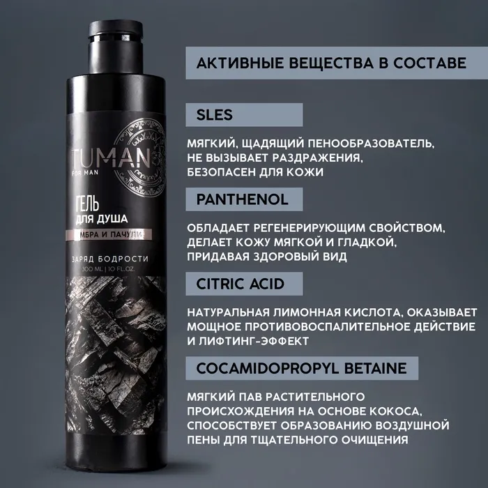 Гель для душа мужской, 300 мл, аромат амбры и пачули, URAL LAB — Характеристики