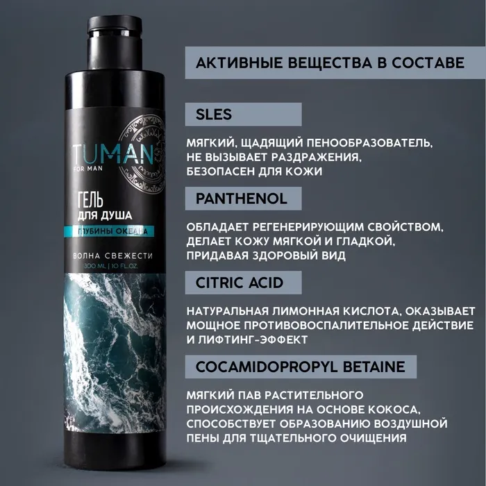 Гель для душа мужской, 300 мл, аромат глубины океана, URAL LAB — Характеристики