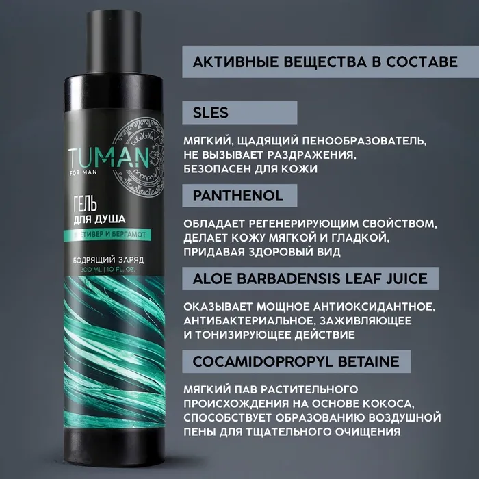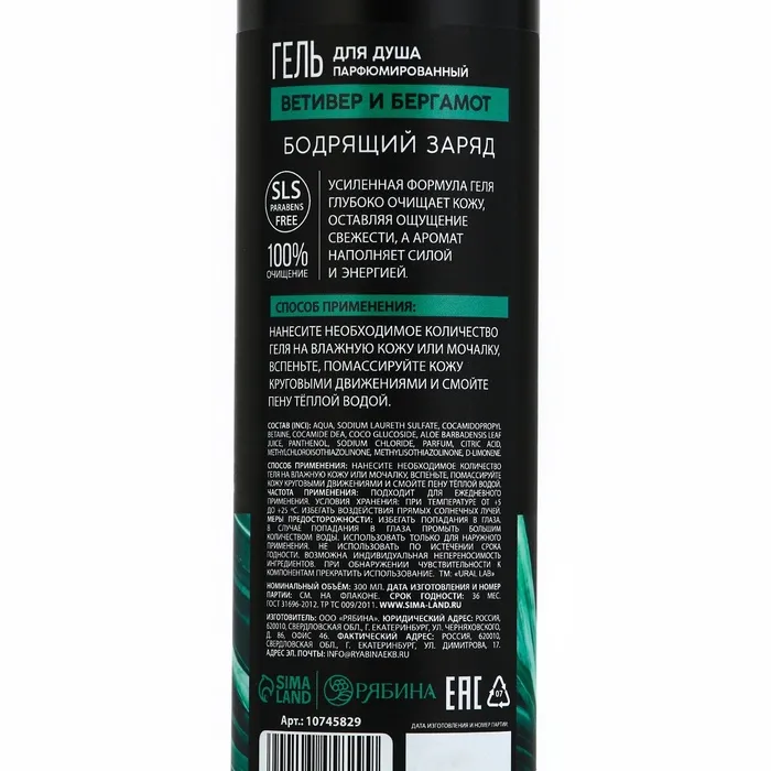 Гель для душа мужской, 300 мл, аромат ветивера и бергамота, URAL LAB — Характеристики