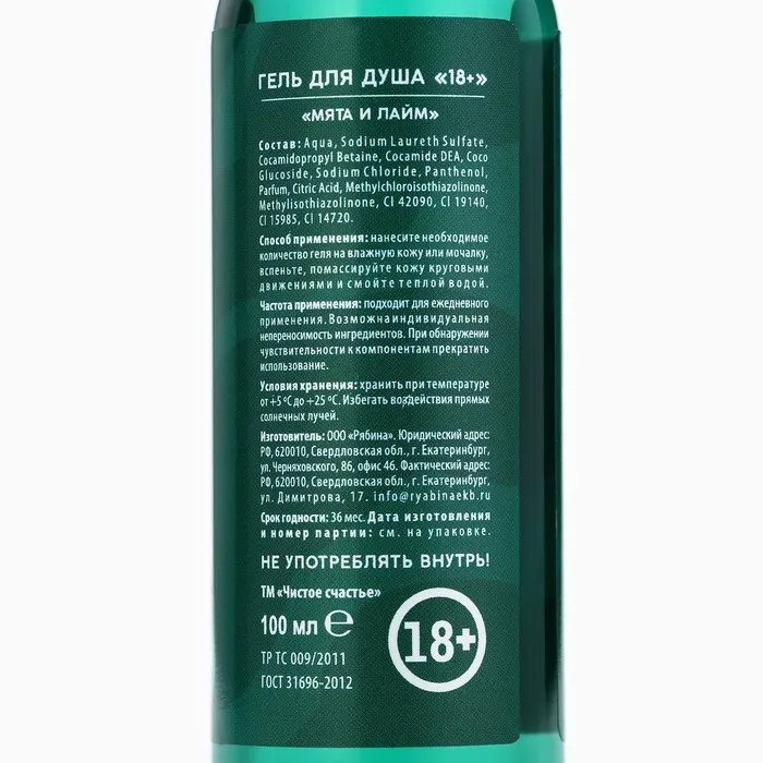 Гель для душа «Отполируй свой болт», 100 мл, аромат мяты и лайма, 18+, Чистое счастье — Характеристики