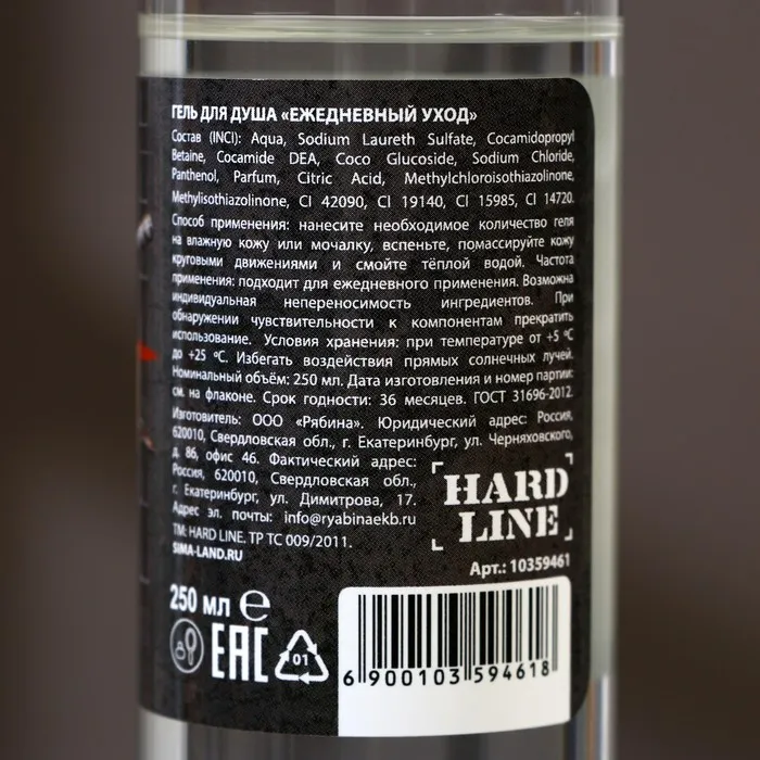 Гель для душа «Пахни как пацан, а не чушпан», 250 мл, аромат мужского парфюма, HARD LINE — Характеристики