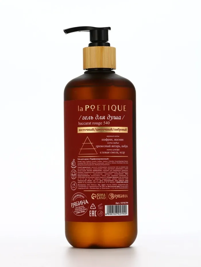 Гель для душа парфюмированный laPOETIQUE, 500 мл, аромат Baccarat rouge 540 — Характеристики
