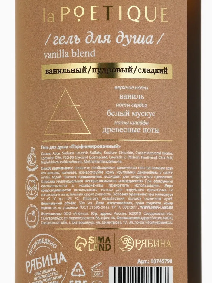 Гель для душа парфюмированный laPOETIQUE, 500 мл, аромат Vanilla blend — Характеристики