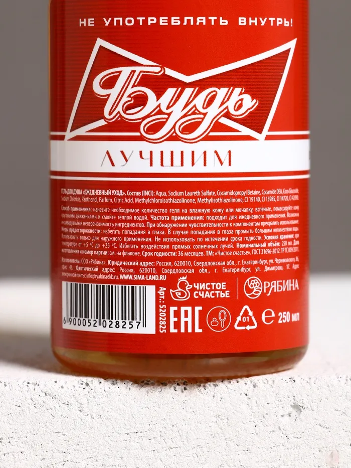 Гель для душа пиво «Будь», 250 мл, аромат бергамота и лимона, HARD LINE — Характеристики