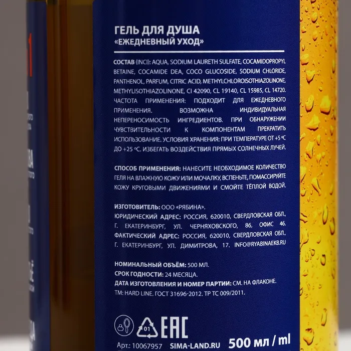 Гель для душа пиво «Настоящий мужик», 500 мл, аромат мужского парфюма, HARD LINE — Характеристики