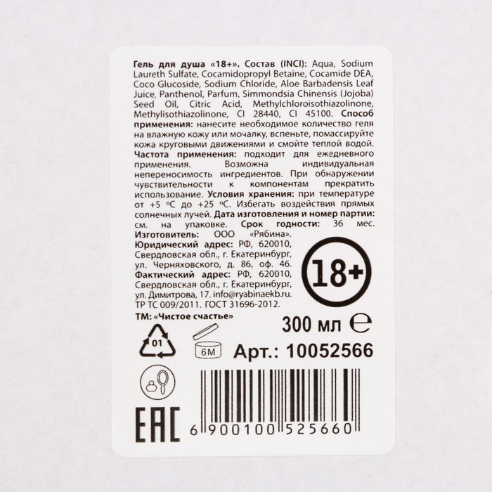 Гель для душа «Плохой девочке», 300 мл, аромат черничного йогурта, 18+, Новый Год — Характеристики